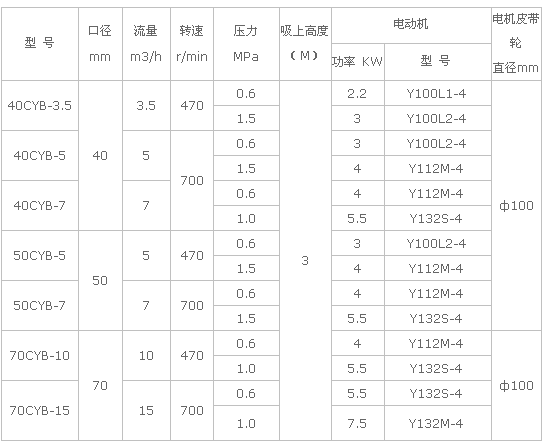 CYB系列稠油齒輪泵性能參數(shù)表