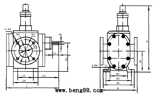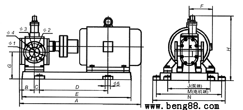 YCB型齒輪泵外形及安裝尺寸